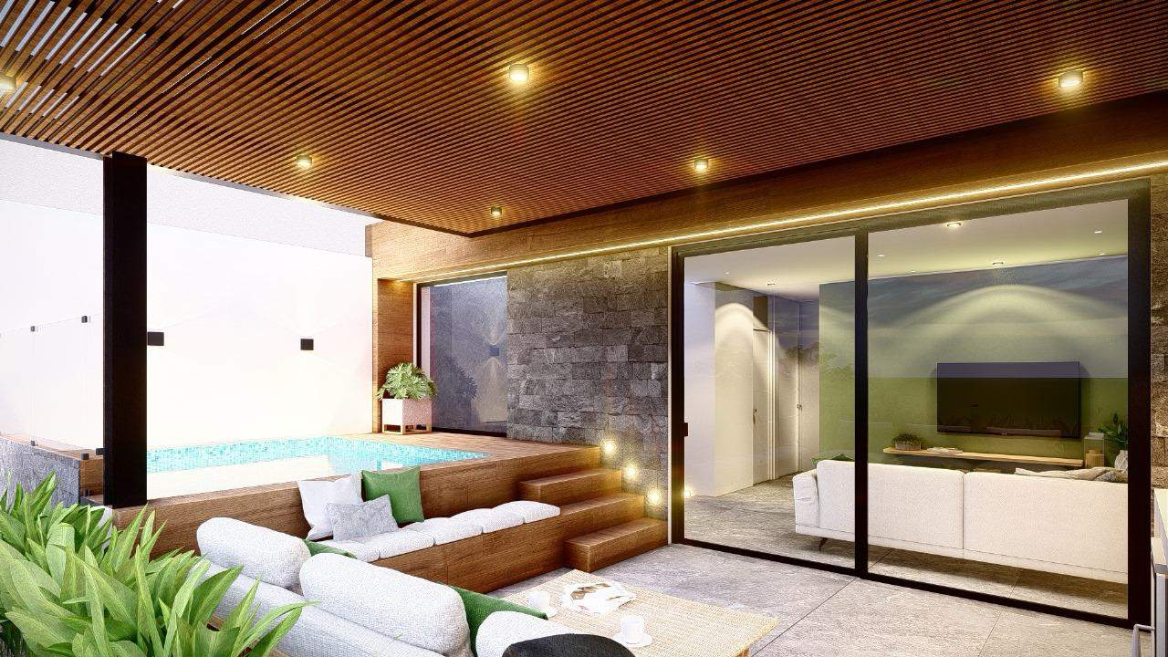 Área Social y Recreativa: Un espectacular jardín posterior que integra una piscina privada y una zona de parrillas, creando el ambiente perfecto para el entretenimiento.